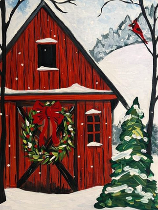 This adorable country, winter scene is on an 11 x 16 canvas. We will provide everything you need to paint the "Winter Barn". You take home a finished piece. You may bring your own beverage. Kids 8+ are allowed, but must be supervised (no drop-offs)